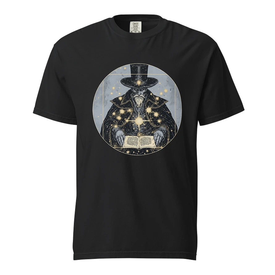 The Magician tarot card represents willpower, creativity, and transformation. This piece embodies the message “Control the mind, control the game”, a reminder that true mastery starts within. It is a garment that celebrates personal strength and the magic you create with focus.