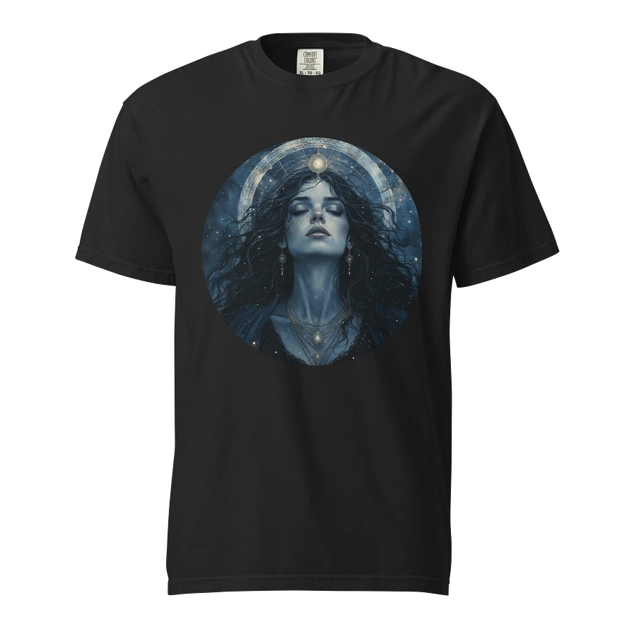 The High Priestess tarot card symbolizes intuition, mystery, and inner wisdom. This collection piece carries the message “Undress your mind first”, inviting you to strip away mental barriers and connect with your authentic self. It’s a design that honors introspection and the power of quiet knowledge.